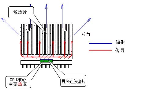 輻射散熱 將機(jī)體的熱量以熱射線的形式散發(fā)給周圍溫度較低的物體,即散發(fā)于低溫空氣中,稱為輻射散熱。這是安靜狀態(tài)下的主要散熱方式,受環(huán)境溫度的影響。 例如CPU散熱,CPU通過導(dǎo)熱硅膠墊片把熱量傳遞給了散熱模組,散熱模組再通過輻射散熱的方式把熱量帶到溫度相對(duì)低空氣當(dāng)中。 對(duì)流散熱 通過空氣的流動(dòng)來達(dá)到散發(fā)熱量的一 種散熱方式。 例如電腦中的散熱風(fēng)扇,將電腦中的熱量吹出去并帶來冷空氣,增加空氣的流動(dòng)以到達(dá)更好散熱的目的。 蒸發(fā)散熱 水分因高溫汽化時(shí)帶走熱量而達(dá)到散熱的一種方式。 例如人流汗,汗液蒸發(fā)時(shí)從皮膚吸熱,保持體溫不致升高